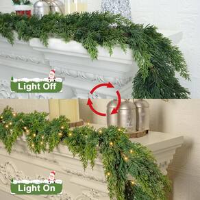 - Guirlanda verde com luzes: guirlandas artificiais de pinho são uma decoração perfeita para o feriado de Natal em ambientes internos e externos. Pode ser uma peça central maravilhosa, basta pendurá-las na mesa, na lareira, nas portas da frente, nas salas de estar, nas janelas, nas paredes, nas lareiras e em qualquer lugar que você quiser. É um item de Natal indispensável para adicionar um ambiente festivo à sua casa!