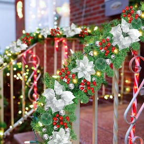 característica: Este rattan de Natal é feito de material de PVC de alta qualidade, resistente e lindamente feito, não é fácil de fiapos, com uma imagem realista, cor agradável e brilho agradável. O design brilhante na videira de flores de Natal é adequado para decoração noturna, emitindo luzes brilhantes, e seu design exclusivo é cheio de espírito natalino. Com o design exclusivo e estilo elegante, você pode adicionar diferentes acessórios decorativos para um visual realista que trará alegria e atmosfera festiva aos seus móveis. Peso mais leve e tamanho compacto para facilitar a portabilidade e armazenamento. É uma mistura de formas festivas que não apenas embelezam a área da sua janela, mas também usam esta decoração de Natal em uma grade ou porta para chamar a atenção. Ideal para ambientes internos ou externos, sua casa se encaixará perfeitamente no clima de Natal. Para criar um clima de Natal, você também pode usá-lo para decorar sua casa, pátio e jardim. Especificação: Nome do produto: Guirlanda de Natal com luzes Material do produto: PVC Ocasiões aplicáveis: Natal, decoração de festa de férias, etc. - Guirlanda de Natal de 2,7 m: 2,7 m (266,7 cm) com 25,4 cm de diâmetro, 220 pontas de galho, com 7 flores prateadas, 40 bolas. As cores brilhantes combinam com padrões tradicionais que permitem um leve toque dos olhos. É uma bela decoração para suas férias. - Decoração de Natal para ambientes externos e internos: a guirlanda é uma decoração fantástica para decorar melhor seu quarto. Cores brilhantes representam calor e vitalidade e formas fofas garantem um clima festivo feliz. Pode ser pendurado diretamente na porta como uma bela decoração. - Feito à mão e durável: a guirlanda verde clássica e a guirlanda são bonitas e grossas, tornando sua decoração mais charmosa e atraente. Pode ser exibido em qualquer lugar da sua casa, pendurado na porta da frente, janela, escada, lareira ou mesa da sua casa para adicionar uma atmosfera de Natal mais forte à sua família. - Operado por bateria: guirlanda de Natal com luzes requer 3 pilhas AA (não incluídas), para que você não precise se preocupar com fiação, você pode colocá-las em qualquer lugar. - Ótimo para o Natal: deseje a seus amigos, familiares e vizinhos um Feliz Natal e obtenha todo o bairro no espírito do Natal em dezembro!