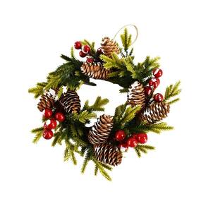 Guirlanda Natal Pinhas e Azevinhos Nevados 25cm