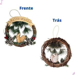 Guirlanda enfeite de porta natalino com esquilo e pinhas