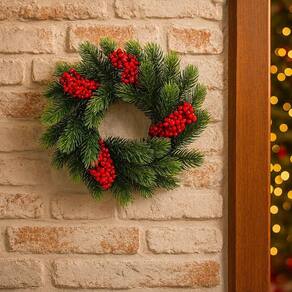 Guirlanda de Galho Verde com Berries Vermelhos 25cm