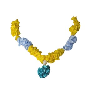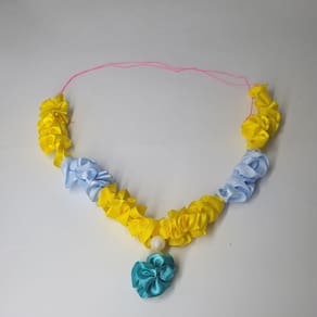 - com amarração que não irrita o pescoço tanto das pessoas que vão utilizá-las, quantos das deidades e murtis, quando oferecidos em pujas, rituais e celebrações.