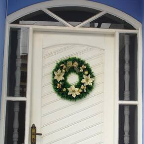 Surpreenda seus convidados neste Natal com a belíssima Guirlanda 38 Cm Enfeite Natalino Laço Natal E Flor Poinsétia. Esta guirlanda é perfeita para decorar a sua porta de entrada, a sala de estar ou qualquer outro ambiente que você desejar.
