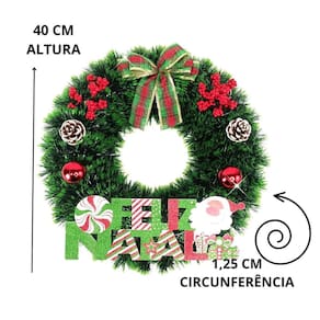 Guirlanda Natal Super Luxo Natalina 40cm Feliz Natal Decoração Porta Loja e Cor: Verde Guirlanda Natal Super Luxo Natalina 40cm Feliz Natal Decoração Porta Loja e Guirlanda Natalina com Pinhas e Papai Noel - Encante o Seu Natal Dê um toque especial ao seu lar e crie uma atmosfera mágica e acolhedora com esta linda Guirlanda Natalina. Perfeita para decorar portas, janelas, vitrines ou até para compor a mesa de Natal, ela é o detalhe que faltava para tornar sua celebração ainda mais especial. Destaques: Design Elegante e Festivo: Decorada com laços de tecido, pinhas e um adorável Papai Noel desejando Feliz Natal. Versatilidade na Decoração: Ideal para enfeitar portas, janelas e vitrines ou como peça central na mesa natalina. Espírito Natalino: Crie um ambiente cheio de charme, alegria e boas energias para a sua família e convidados. Características Técnicas: Cores: Colorido Material: Polipropileno Detalhes: Laços, pinhas e um Papai Noel simpático Dimensões Aproximadas: Altura: 40cm Diâmetro/largura: 40cm Espessura: 7cm Circunferência: 1,25m Conteúdo da Embalagem: 1x Guirlanda Natalina com Papai Noel Marca: Não Informado