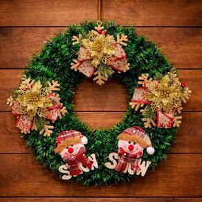 Deixe sua casa ainda mais encantadora neste Natal com esta linda guirlanda natalina com boneco de neve. Perfeita para decorar portas, paredes, vitrines e ambientes internos, ela traz todo o clima festivo e acolhedor das festas de fim de ano
