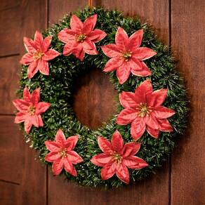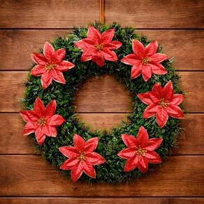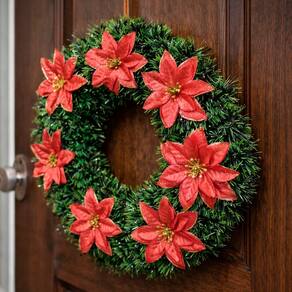 Guirlanda Natalina Enfeite De Porta Decoração Flores De 40cm -