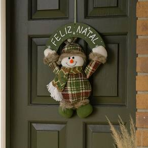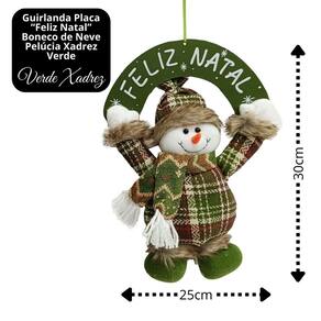 Destaque sua decoração natalina com a Guirlanda Placa Feliz Natal em madeira, decorada com um adorável Boneco de Neve em pelúcia vestido em roupa verde xadrez e cachecol em crochê. Uma peça encantadora e cheia de detalhes que transmite aconchego e o verdadeiro espírito natalino.