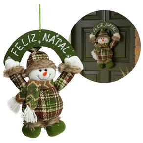 Guirlanda Feliz Natal com Boneco de Neve Verde 30cm
