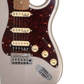 uitarra Benson Hardy 902 CG/TT MH Chrome, estilo Strato com captação HSS da Wilkinson, com corpo em Alder, braço e escala em Roasted Maple, Nut de osso e acompanha Bag. Na cor cinza com escudo tortoise e ferragens cromadas.