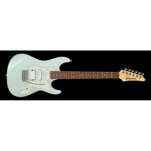 GUITARRA ELETRICA - 6C - IBANEZ - AZES40-MGR Modelo: AZES40Série: StandardConstrução: Braço Parafusado Bolt On Tipo de Braço: azesMaterial do Braço: MapleCorpo: PoplarEscala: JatobaTrastes: 22Tipo de Traste: MédiosMarcação na Escala: Pontos BrancosPonte: T106 com saddles de aço ConfortCaptação: Essentials s Braço Passivo/Cerâmico Essentials s Meio Passivo/Cerâmico Accord h Ponte Passivo/Cerâmico Controles: 1 Volume, 1 Tone, 1x Alter SwitchChave Seletora: 5 PosiçõesAfinação de fábrica: 1E,2B,3G,4D,5A,6EEspaçamento das Cordas: 10.5mmFerragens: CromadasCor: Mint Green mgr Origem: Indonésia Dimensões do Braço Escala: 635mm/25A: Largura do Nut: 42mm no nutB: Largura no Último Traste: 56.4mm no 22ºTC: Espessura no 1º Traste: 20.5mm no 1ºTD: Espessura no 12º Traste: 22.5mm no 12ºTRaio: 250mmR