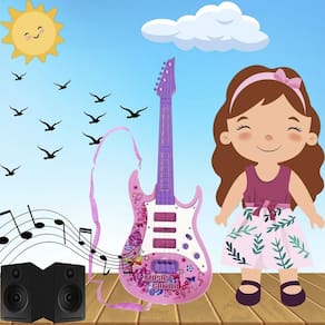 A guitarra infantil é um excelente brinquedo para a criança desenvolver desde cedo o interesse pela musica, além disso, contribui para o desenvolvimento psicomotor, cognitivo, linguístico e afetivo que desperta a sensibilidade, criatividade, senso rítmico, imaginação, memoria, atenção, concentração e socialização.