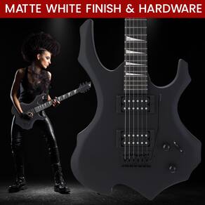 - Estilo de chama de metal pesado: a guitarra elétrica de tamanho completo incluída possui 1 botão de volume e 1 botão de tom. Ele também tem uma ponte tremolo estilo S clássica, ferragens cromadas e pinos de ajuste, um pescoço de 21 trastes e um acabamento preto brilhante