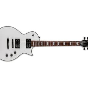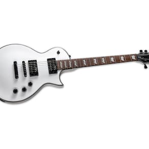 Guitarra esp ltd ec-256 lec256sw - snow white Ltd ec-256 pega muitos dos aspectos mais legais de nossos modelos da série ec de ponta e os oferece a você em uma guitarra super acessível que está pronta para o rock. Uma forma clássica que é excelente para todos os estilos e gêneros musicais, o ec-256 parece incrível com várias ligações no corpo e no cabeçote, como você espera de guitarras de alta qualidade. Tocar o ec-256 também é um sonho tornado realidade, com construção de braço fixo para acesso rápido e fácil aos trastes mais altos. O ec-256 também possui um corpo de mogno, um braço de mogno fino em forma de u de três peças confortável e rápido e uma escala de jatobá torrado com inlays de bandeira e 22 trastes extra-jumbo. Esta guitarra apresenta nossos aclamados captadores humbucking esp designed lh-150 que oferecem ótimo tom para todos os gêneros de música e a flexibilidade de tom de divisão de bobina controlada por um interruptor push-pull no botão de tom. Construction: set-neckScale: 24.75Body: mahoganyNeck: 3pc mahoganyFingerboard: roasted jatobaFingerboard radius: 350mmFinish: snow whiteNut width: 42mmNut type: moldedNeck contour: thin uFrets/type: 22 xjHardware color: blackStrap button: standardTuners: ltdBridge: tom & tailpieceNeck pu: esp designed lh-150nBridge pu: esp designed lh-150bElectronics: passiveElectronics layout: volume/volume/tone(push/pull)/toggle switchStrings: d'addario xl110 (.010/.013/.017/.026/.036/.046)Case: ec guitar form fit caseCase included: n