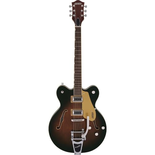 As guitarras Gretsch Electromatic Center Block são projetadas para reproduzirem o clássico e puro timbre Gretsch, mas com punch e volume. O G5622T Electromatic Center Block com Bigsby tem o corpo em maple com double cutaway, bloco central em spruce (com câmaras), para maior ressonância, alto poder de ganho e conforto.
