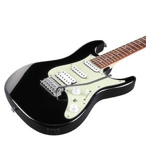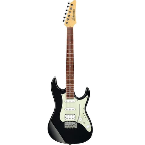 Guitarra Ibanez AZES 40 BK Super Strat Black A série AZES ou AZ Essentials de guitarras elétricas leva o tom, a versatilidade e a excelente jogabilidade da série AZ e as oferece a uma ampla gama de guitarristas a um preço mais acessível. No entanto, esses instrumentos também têm suas próprias especificidades: uma escala de 635 mm, um jack de saída de uma peça e saddles de aço redondos confortáveis que permitem maior ajuste da altura das cordas. O corpo do AZES40 é feito de poplar. O braço de maple é colado a uma escala de jatobá com vinte e dois trastes de tamanho médio. Os pontos de posição facilitam a navegação em sua superfície. A combinação de um humbucker Accord e dois captadores single-coil Essentials todos passivos com ímãs de cerâmica dá à guitarra um tom equilibrado e versatilidade sonora - o instrumento encontrará um lugar em uma ampla gama de estilos musicais. O sistema de comutação de captador dyna-MIX 9 de lâmina de cinco posições e comutador de duas posições oferece nove opções de captação diferentes, incluindo bobinas de humbucker divididas ou fiação em série de bobina única. As cordas são ancoradas nas tarraxas Die-Cast e ao tremolo T106 da Ibanez. A aparência elegante é acentuada por um escudo prático e ferragens cromadas. As guitarras com o nome Standard são a linha principal da marca Ibanez. Estes são instrumentos acessíveis que atraem iniciantes e jogadores experientes por sua habilidade, som e jogabilidade. Especificações: Cor do produto: Preto Cor: Preto Tratamento de superfície: Brilho Tipo: modelo Super ST Corpo: Poplar Braço: Maple Escala: 635mm Raio: 9,84 Número de trastes: 22 Largura da Porca: 42mm Escala: Jatobá Configuração de coleta: HSS Modelo de captação: 1x Accord humbucker, 2x Essentials single-coil Controles: 1x Volume, 1x Tone, 1x Alter switch Comutação de captação: 5 vias Ponte: Tremolo Cordas: D'Addario EXL110 País de origem: Indonésia Marca: Não Informado