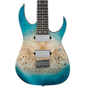 Guitarra ibanez eletrica rg-1127pbfx-cif w c/bag 7 cordas Características wizard ii-7 11pc maple / walnut / purpleheart pescoço tampo de poplar burl / corpo de basswood americano escala de ébano com incrustações de pontos em madrepérola jescar evo gold trastes c / tratamento premium da borda do traste dimarzio covered fusion edge-7 h coletor de braço captador de ponte dimarzio covered fusion edge-7 h interruptor de torneira da bobina ponte monotrilho cosmo black hardware cabeças da máquina de travamento gotoh mg-t embutimento de ponto lateral luminescente gig bag incluso Ean: 4549763229755