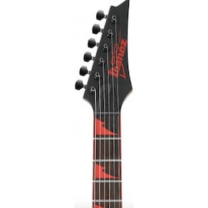Especificações: Nome do modelo: GRG131DX Fabricado em: China Acabamento es : preto liso BKF Tipo de corpo: corpo sólido Material do corpo: Poplar Articulação do braço: AANJ Ponte: Ibanez F106 fixed Cor de hardware: Black Tipo do braço: GRG Material do braço: 1-piece maple Comprimento da escala: 648mm/ 25½" Radius: 400mmR a: Width 43mm at NUT b: Width 58mm at 24F c: Thickness 19.5mm at 1F d: Thickness 21.5mm at 12F Material do fingerboard: Treated New Zealand pine w/ binding Inserções de fingerboard: Red sharktooth Trastes: 24 / jumbo Configuração dos captadores: HH Captador de ponte: Infinity R H bridge pickup Passive/Ceramic Captador do braço: Infinity R H neck pickup Passive/Ceramic Controles: Master volume / master tone / 5-way lever