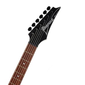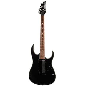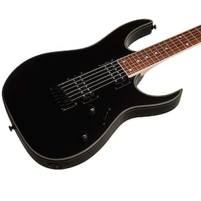 Guitarra Ibanez RG421EX-BKF Super Strat Black Flat As guitarras elétricas da série RG da marca japonesa Ibanez estão entre os instrumentos mais famosos desse tipo. Seu braço mais plano e rápido, peso mais leve e recortes distintos com cortes finos e pontiagudos para facilitar o movimento em todo o braço são as razões de sua extraordinária popularidade entre os guitarristas de rock e metal. Dois humbuckers passivos patenteados pela Quantum com ímãs de cerâmica dão à guitarra um som equilibrado com resposta rápida de graves e médios fortes, que você apreciará ao criar riffs mais rápidos. O corpo de Meranti é adornado com encadernação brilhante. O braço de maple estreito com o perfil Wizard III é ideal para tocar rápido. A escala de jatobá cereja brasileira é equipada com trastes jumbo e pontos de posição brancos. A estabilidade da afinação é garantida pela fixação das cordas no cabeçote maciço e nas tarraxas pretas. As guitarras com o nome Standard são a linha básica da Ibanez. Estes são instrumentos acessíveis que atraem iniciantes e jogadores experientes por sua habilidade, som e jogabilidade. Especificações:Cor do produto: Black FlatCor: PretoTratamento de superfície: foscoTipo: modelo Super STCorpo: MerantiBraço: MaplePerfil do braço: Wizard IIIEscala: 648 mmRaio: 15,75Número de trastes: 24Largura do nut: 43mmEscala: JatobáConfiguração de captação: HHModelo de captação: 2x Quantum HumbuckerControles: 1x Volume, 1x ToneComutação de captação: 5 viasPonte: FixaFerragem: PretoCordas: D'Addario EXL110País de origem: Indonésia