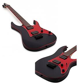 Guitarra ibanez grg131dx bkf rg gio series superstrato black flat com escala escura e escudo vermelho