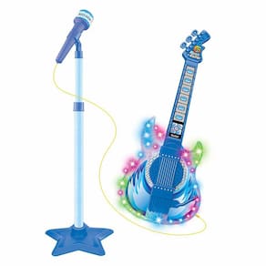 Guitarra Infantil com Microfone Pedestal - Rock Show - Azul - DM Toys: agora seu pequeno está preparado para um show de verdade! A Guitarra com Microfone Pedestal Rock Show é a segunda principal atração do show. A primeira é seu pequeno. Essa linda guitarra de brinquedo com luzes coloridas e microfone, é perfeita para brincar de cantar, tocar e se sentir como uma estrela! Conecte o MP3 player ou smartphone para cantar as suas músicas favoritas. Informações: • Produto: Guitarra com Pedestal Microfone Rock Show • Marca: DM Toys • Coleção: Rock Show • Tipo: Guitarra Infantil com Microfone • Categoria: Instrumentos Musicais de Brinquedo • Tamanho (C x A x L): - Guitarra: 48 x 19 x 5,5 cm - Microfone: 85 x 20.5 x 20.5 cm • Conteúdo: - 01 pedestal montável - 01 microfone - 01 guitarra - 01 cabo P2 • Recomendação: para crianças a partir de 04 anos de idade Especificações: • Referência: DMT5894 • Código de Barras: 7899205958949 • Embalagem (C x A x L): 44 x 32 x 06 cm • Embalagem (Peso): 0.585 kg • Material / Composição: Plásticos PP, PS, PVC e ABS • Alimentação: Funcionamento à pilhas - 3 pilhas AA (não incluídas) • Registro: CE-BRI/OCP0019 N001/20 BR-001/20 NBR NM 300/2002 • Certificado: Órgãos Autorizados - OCP´S (Organismos de Certificação de Produtos) Benefícios De Brincar: • Eleva a autoestima • Exercita a memória • Estimula o raciocínio • Exercita o imaginário • Desenvolve a criatividade • Desenvolve percepção visual • Desperta a atenção e curiosidade • Desenvolvimento neuropsicológico • Estimula habilidades motoras básicas • Incentiva a comunicação e linguagem • Desenvolve aspectos emocionais e afetivo • Estimula o reconhecimento de formas e cores Aviso: • As imagens são meramente ilustrativas • Os tamanhos e medidas são aproximados • As cores e estampas dos produtos podem ter variações • As informações são de responsabilidade do fabricante ou fornecedor