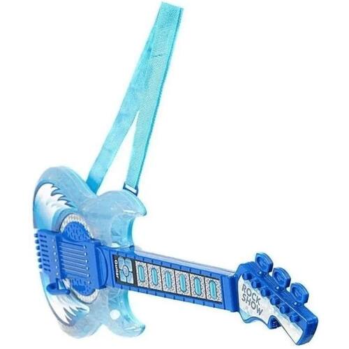 Guitarra Infantil com Microfone Rock Show com Luzes Coloridas e Som para Brincar de Cantar Azul DM Toys
