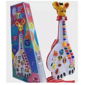 Guitarra musical infantil girafa 26 teclas sons e 10 músicas - deny toys possui 26 teclas sonoras 8 teclas de notas musicais -11 teclas de dingos músicas 7 teclas com sons de animais. Fotos do produto, produto na embalagem. Tamanho: comp 42 cm / largura 19 cm sons de bichos e som de piano acende luz funciona com 3 pilhas aa não inclusas . Recomendados para crianças acima de 3 anos. Registro inmetro: 000052/2021 Marca: Deny Toys