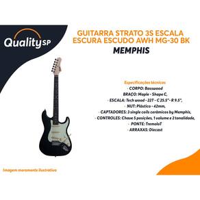 GUITARRA STRATO 3S ESCALA ESCURA ESCUDO AWH MG-30 BK MEMPHIS