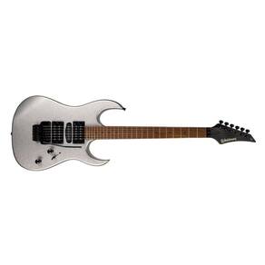 Guitarra waldman elétrica 6 cordas wig-270 spsv características: - marca: waldman - modelo: wig-270 spsv - construção do braço: parafusado - madeira do corpo: tília - acabamento do corpo: tília - ponte tipo: tremolo floyd, preto - captadores: h s h - controles: 1 volume, 1 tone, 5 posições - possui escudo: não - ferragens: preto - madeira do braço: maple torrado - marcações: pontos - escala: maple torrado - trastes: regular - tarraxas: preto fundido - cor do headstock: preto - cor da guitarra: sparkle silver - linha: extravaganza Marca: Não Informado