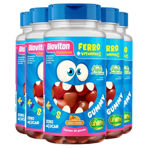 Gummies são suplementos em forma de pastilhas de goma, livres de glúten e zero açúcar, com nutrientes diversos que atendem a várias funções no organismo. A goma utilizada é a pectina gelificante e glaceante cera de carnaúba. Os aromas e corantes são naturais e edulcorante isomalte. Ferro + vitamina c kids - o ácido ascórbico, quando ingerido na mesma refeição com o ferro, potencializa a absorção. A baixa ingestão de ferro acarreta elevada prevalência de anemia e a baixa ingestão de vitamina c, está associada também aos riscos aumentados de anemia na criança. - Modo de uso Ingerir 1 goma ao dia. Este produto é recomendado para grupo populacional a partir de 1 ano.