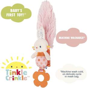 A Tinkle Crinkle Collection é uma coleção fresca e energética de brinquedos de bebê de pelúcia com estampas contemporâneas em tecidos premium que promovem brincadeiras táteis macias, seguras e divertidas para todas as idades. Inspirada e nomeada em homenagem à nossa lagarta colorida mais vendida de todos os tempos, cada peça da coleção carrega o espírito do com um visual atualizado para se adequar aos viveiros modernos e apelar para as novas gerações de amigos. Desde a premiada academia de atividades até a bola de atividade macia e smushy, há muito para desfrutar. Os brinquedos Play Together com os personagens Birdie, Bunny e Tinkle Crinkle , são brinquedos sensoriais para encantar e entreter o bebê enquanto brincam ativamente juntos. Projetado para brincar desde o primeiro dia, este brinquedo de desenvolvimento incentiva a ligação através do jogo com sinos macios balançando no corpo e rugas, dentes de silicone para mastigação segura, e um tecido de penas macio e flexível para cócegas e carícias suaves. Inclui uma alça macia nas costas e tira de silicone flexível dentro para manter o tickler de pelúcia na vertical. Esta pelúcia ultra-macia é construída para altos padrões de qualidade com detalhes nos olhos bordados para garantir um jogo seguro para idades 0+. Baby GUND pelúcia é lavável por máquina para fácil limpeza!