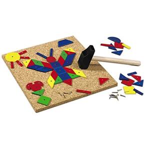 HABA Geo Shape Tack Zap Play Set - Faça Desenhos Geométricos com Corkboard, Martelo, Templates e 50 Telhas de Madeira (Made in Germany).