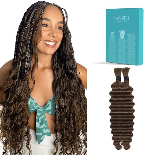 Lvnatu Cor 4 Cachos Boho Cabelo Humano Trança Marrom para Tranças Boêmias Sem Nó Ondulado Profundo Sem Trama 2 Pacotes 100 g 55 cm - Fácil de Instalar para Salão/Casa/Iniciantes
