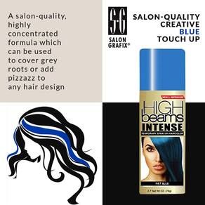 - Feixes altos de cor intensa azul headbanging: Salon Grafix High Beams tintura de cabelo spray temporário intenso em azul Headbanging, é uma fórmula de cobertura total de qualidade de salão que pode ser usada para cobrir raízes cinzentas ou adicionar toque especial a qualquer design de cabelo. Lata de 76,5 g