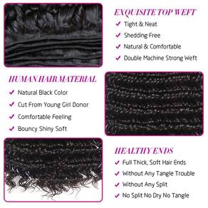 Material do cabelo: Feixes de cabelo virgem brasileiro não processado com extensões de trama dupla. Tipo de cor: cor preta natural; pacotes de ondas de água #1B. Peso do cabelo: 95-100 g/feixes. Trama do cabelo: trama dupla à máquina, evita quedas. Qualidade: sem emaranhados, queda mínima, macio e saudável. Perguntas sobre o nosso cabelo humano? P1: Quantos mechas uma cabeça de peruca completa precisa? R: Normalmente 3 mechas são suficientes para uma cabeça inteira. P2: Por que meu cabelo está ficando emaranhado e soltando? R: Para o cabelo novo, os primeiros fios de cabelo podem estar caindo, tão normal quanto o nosso cabelo. Pode estar muito seco e se tornar frágil, e causar quebras. Certifique-se de lavar e condicionar bem o cabelo pelo menos uma vez por semana ou duas vezes por semana, penteie o cabelo de vez em quando. E você também pode pedir mais sugestões ao seu estilista. P3: Como manter o seu cabelo? R: Trate o cabelo como se fosse seu cabelo e use xampu e condicionador de boa qualidade regularmente. Deixe o cabelo secar naturalmente, não o exponha ao sol. Evite o superaquecimento dos modeladores e passadores de ferro, o que encurtará a vida útil do cabelo do que deveria. P4: Quanto tempo vai durar? R: Depende de como você manter. Trate-o como seu próprio cabelo e cuide muito bem dele, normalmente pode durar mais de 6 meses. Sugerimos usar xampu e condicionador para condicionar seu cabelo uma vez por semana, secador de cabelo ou muito calor. - Material do cabelo: Cabelo virgem brasileiro não processado, mechas de cabelo humano ondulado, cortado de um doador, macio e saudável - Cor do cabelo: cor preta natural, feixes de ondas de água, elegante e cheio, leve e elástico - Qualidade do cabelo: cachos de alta qualidade, trama de máquina dupla, macia e brilhante, alta elasticidade, sem emaranhados, sem piolhos, sem rachaduras, sem odor e extremidade saudável, mais grosso e resistente, menos queda e emaranhado, natural e bonito - Peso do comprimento do cabelo: Feixes de ondas de água brasileiras 95-100 g/mechas esticando o cabelo para ficar liso e depois medir o comprimento real - Cenário de uso: pode ser utilizado no dia a dia, casamentos, encontros, festas temáticas, encenações e quaisquer outras ocasiões, deixando você mais confiante, bonito e charmoso