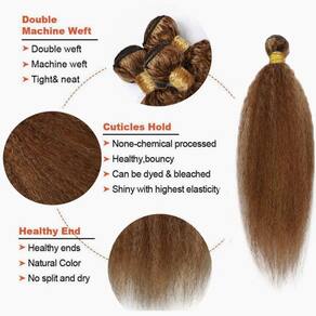 ZevPiul Hair Bundles~Mais bonito e confortável! Especificações do cabelo: 1. Material: 100% cabelo humano brasileiro não processado. 2. Textura: Pacotes retos crespos. 3. Tipo de cabelo humano: Cabelo humano Remy brasileiro. 4. Qualidade do cabelo: trama usinada dupla, sem emaranhamento, sem queda, sem cheiro. 5. Cor do cabelo: P430 mechas de cabelo humano com destaque, marrom, castanho avermelhado médio. 6. Comprimento do cabelo: mechas de cabelo de 30 a 86 cm (estique o cabelo até ficar liso e depois meça.) 7. Peso do cabelo: 3 mechas, 100 g/pacote, 300 g no total. 8. Ocasião: Perfeito para uso diário, Halloween, shows, festas temáticas, casamentos, encontros e assim por diante. Perguntas frequentes: P1: Quantos mechas eu preciso para uma cabeça inteira? R1: Normalmente, 3 mechas são suficientes para fazer uma cabeça inteira, mas se você quiser parecer mais longo ou mais cheio, 4 mechas podem ser uma escolha melhor. P2: O cabelo pode ser permanente? A2: pode ser alisado e recortado como desejar, mas tenha cuidado para não exceder 51 °C, caso contrário, danificará o cabelo. P3: Por que a trama do cabelo cai? R3: Assim como nosso cabelo normal, haverá uma pequena perda de cabelo quando o manusearmos com nossas mãos, o que exige que usemos corretamente. P4: Como evitar emaranhamento ou queda de cabelo? A4: Suas extensões de cabelo podem ficar emaranhadas devido à secura, acúmulo de gordura e sujeira. Lave o cabelo com um bom xampu e condicionador e penteie suavemente o cabelo com os dedos. Certifique-se de limpar e aparar pelo menos uma vez por semana. Lembrete: 1. Lave o cabelo regularmente. 2. Desembarace o cabelo suavemente antes de lavar. Não esfregue ou torça. 3. Adicione xampu suave à água fria e mexa o cabelo até limpar. Enxágue completamente. - ?Material de mechas de cabelo humano 4/30?: mechas de cabelo humano virgem brasileiro não processado, cabelo humano liso crespo, macio e saudável para costurar ou perucas. - ?Vantagem dos pacotes de destaque?: trama de máquina dupla, justa e limpa, queda mínima, sem emaranhamento, sem cheiro, fácil de cuidar, dura mais. - ?Loiro Kinky Straight Bundles Cor?: Os pacotes são P4/30, marrom e cor loiro néctar das flores. Pode ser alisado, enrolado, estilizado como seu próprio cabelo. - ?Peso e comprimento do cabelo?: 95-105 g/mechas, (cerca de 93-99 g/peça), 30,5 a 86 cm, múltipla escolha, peso total e fiel ao comprimento. - ?Mais bonito?: perfeito para uso diário, Halloween, Natal, shows, festas temáticas, casamentos, encontros e assim por diante, deixa você mais bonita e confiante!