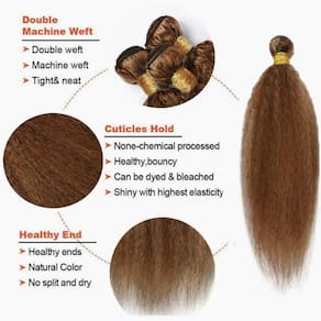 - ?Loiro Kinky Straight Bundles Cor?: Os pacotes são P4/30, marrom e cor loiro néctar das flores. Pode ser alisado, enrolado, estilizado como seu próprio cabelo.