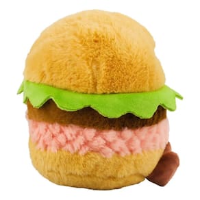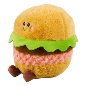Pelúcia no formato de um hamburger com 18 cm de altura com rostinho feliz e pezinhos. Olhos de plástico. Material: poliéster; Enchimento: fibra de poliéster; Produto certificado por Órgão acreditado pela CGCRE do INMETROCódigo: AE-012-FPeso: 120gAltura:18cmLargura: 15cmComprimento: 15cm