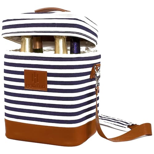 Design espaçoso e inteligente nossa bolsa de viagem portátil para vinho permite que você carregue até 4 garrafas de vinho, champanhe, água, vinho, cerveja e qualquer outra bebida que você tenha em mente. A espuma 5MM EPE e a divisória removível os mantêm s, separados e isolados, tornando os ideais para viagens À prova de vazamentos e construção robusta a sacola de vinho isolada é feita com tecido de lona listrado à prova dágua leve, porém resistente com revestimento traseiro de PVC que é à prova dágua e à prova de vazamentos para garantir que seja resistente o suficiente para acompanhá lo em todas as suas viagens e ao mesmo tempo eliminar o risco de qualquer vazamentos Zíper expansível e design elegante combinamos uma forma espaçosa e funcional com um design moderno e elegante para trazer porta vinhos e bolsas que irão adicionar um toque de estilo ao seu visual. Graças ao zíper expansível, você pode zenar garrafas de vinho já abertas com rolhas para transportá las facilmente Para mais do que apenas vinho Com 4 compartimentos grandes e separados, você não precisa se limitar apenas ao vinho Esta sacola isolada para garrafas permite que você carregue lanches, queijos, frutas, revistas, acessórios diários, etc., enquanto os mantém organizados, tornando os perfeitos para passeios de piquenique, camping, praia e muito mais Portátil e fácil de transportar este porta garrafas de vinho possui alças largas acolchoadas que podem ser ajustadas, permitindo que você carregue o confortavelmente durante todo o dia e possui um gancho elástico em saca rolhas, ao mesmo tempo que parece elegante e bonito. Tamanho 20 x 17 x Marca: Não Informado
