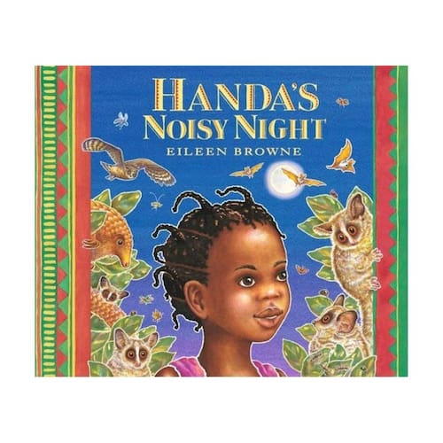 A cast of nocturnal creatures are the surprise stars in a funny tale about nighttime fears, set in southwest Kenya. The latest tale in the best-selling Handa series. When Handa sleeps over at her friend Akeyo's house, she hears lots of strange sounds in the night: snorts, chattering, rattling, squeaks, slurps, wails, a big thud. Akeyo says it's just her family, laughing, talking, playing music, riding a bike, drinking their bedtime milk. Or maybe the baby crying. Or a door slamming. But is she right? Young readers will be happy to be in on the joke as a sequence of animals pay a visit on the facing pages: a pig, fox, porcupine, bat, pangolin, bush baby, owl, and woodpecker. Illustrated in luminous colors, Eileen Brown's humorous take on things that go bump in the night includes endpapers picturing and naming all the nocturnal creatures.