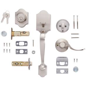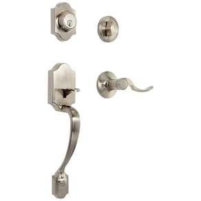 - Conjunto de alças com alavanca Shelby e fechadura de cilindro único em níquel acetinado