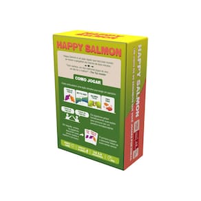 Happy Salmon é um jogo rápido, e caótico, que fará todo mundo se mexer e gargalhar em menos de dois minutos.Os jogadores gritam freneticamente suas ações para procurar por um parceiro correspondente. Em seguida, ambos os jogadores descartam suas cartas usadas e repetem o processo.