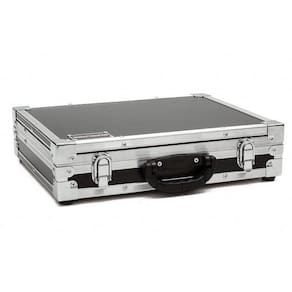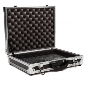 Estrutura de 6mm revestido em laminado tx preta Perfil macho e fêmea de 6mm de alumínio para maior resistência Cantoneira em L nas laterias de 15mm Acabamento interno em espuma de alta densidade Fechos cromados Cantos de metal cromado