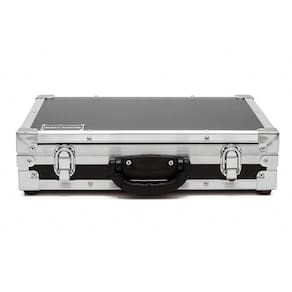 Estrutura de 6mm revestido em laminado tx preta Perfil macho e fêmea de 6mm de alumínio para maior resistência Cantoneira em L nas laterias de 15mm Acabamento interno em espuma de alta densidade com o recorte para cada peça do sistema Fechos cromados Cantos de metal cromado