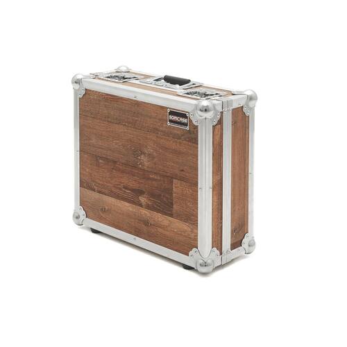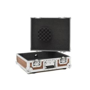 Case Mala para Toca Disco Audio Technica AT-LP120-USB - Vintage Estrutura de 6mm revestido em laminado Vintage Perfil macho e fêmea de 6mm de alumínio para maior resistência Cantoneira em L nas laterias de 25mm Acabamento interno em espuma de alta densidade de 10mm 2 Fechos tipo borboleta cromado Cantos de metal cromado 1 Alça de metal Interna