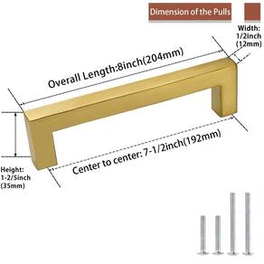 Nossos puxadores de armário quadrados dourados/escovados são de estrutura oca, feitos de aço inoxidável. Estas são nossas maçanetas de porta de armário Goldenwarm com novo design. Estas cores douradas não são muito brilhantes, bonitas e servem aos seus propósitos. A alça geral é leve, mas resistente, não parece diferença com a alça sólida quando são instaladas. Nossas ferragens para móveis podem ajudar você a impressionar seus convidados sem gastar muito. De macio a impressionante ou simples a ousado, nossa enorme seleção de puxadores de gaveta, puxadores de armário ou puxadores de armário darão à sua casa um visual novo e mais acabado. Se o visual é moderno ou transitório, nossa loja tem o estilo e a cor para transformar seu quarto em um impressionante (e acessível). mostre o lugar que você deseja. - ESTILO QUADRADO - puxadores de armário quadrados modernos dourados com acabamento em latão escovado; decore sua casa. Adequado para diferentes estilos de armários, use estas ferragens douradas para decorar seus armários ou atualizar alguns móveis antigos, trazendo a você um visual moderno. Muito elegante e exclusivo. - O que você recebe – você receberá 10 puxadores de armário de latão escovado. Cada puxador inclui parafusos padrão M4 (2,5 cm e 4 cm). Você pode selecionar o tamanho certo de acordo com as espessuras do gabinete. Se você precisar de outro tamanho de parafusos, . - Toque suave – os puxadores dourados são feitos de aço inoxidável, oco, mas resistente, sem bordas de forma. A superfície lisa faz você se sentir confortável ao usar, não precisa se preocupar em ser arranhado. - Medida – Distância do furo: 192 mm; Comprimento total: 204 mm; Barra quadrada: 12 mm x 12 mm - Observação – Goldenwarm foca na qualidade e serviço. Se você encontrar algum problema de qualidade em nossos puxadores de latão escovado, sinta-se à vontade para entrar em contato conosco. Sem risco, resposta em 24 horas.