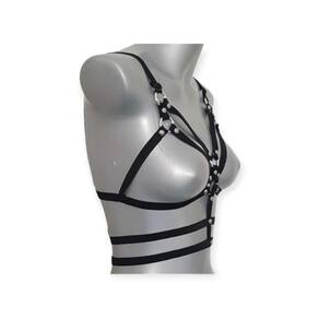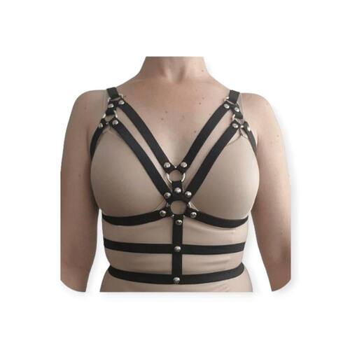 Confeccionado com elástico preto de alta qualidade, este harness promete não apenas um visual impactante, mas também um ajuste confortável e personalizado. As alças reguladoras permitem que a peça se adapte perfeitamente ao seu corpo, garantindo liberdade de movimento e um caimento impecável.