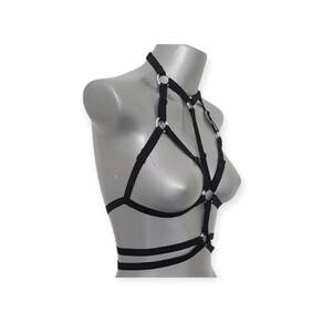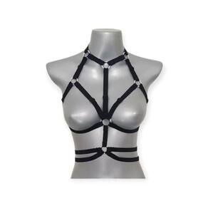 O design deste harness é realçado por argolas metálicas cuidadosamente posicionadas, que não apenas adicionam um toque visualmente , mas também evocam uma aura de sofisticação rebelde. Esses elementos metálicos são o coração do design, conferindo ao Harness Rage um caráter único que se destaca tanto em composições de moda do dia a dia quanto em ambientes mais íntimos de exploração BDSM.