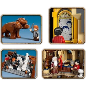 12 minifiguras: incluindo Harry Potter, Hermione Granger, Neville Longbottom, Professor Kettleburn, Nick Quase Sem Cabeça e Alvo Dumbledore, além de figuras de Fluffy, Hedwig e Fawkes