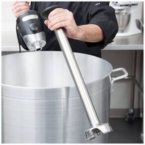 A haste Waring WSB60ST de 40 cm é um eixo removível projetado para liquidificadores de imersão pesados Big Stik da Waring Commercial, permitindo mistura em panelas médias de até 40 litros em cozinhas profissionais. Construída em aço inoxidável monobloco, suporta rotações variáveis até 18.000 RPM para purês, sopas e emulsões. Ideal para operações contínuas em restaurantes e cozinhas industriais.