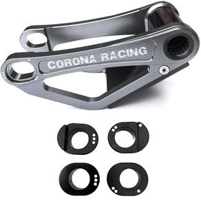 A haste do link da suspensão traseira CoronaRacing tem o propósito em abaixar a suspensão da moto em até 3,5cm atendendo pilotos que tenham uma estatura mais baixa, proporcionando melhor conforto na pilotagem.